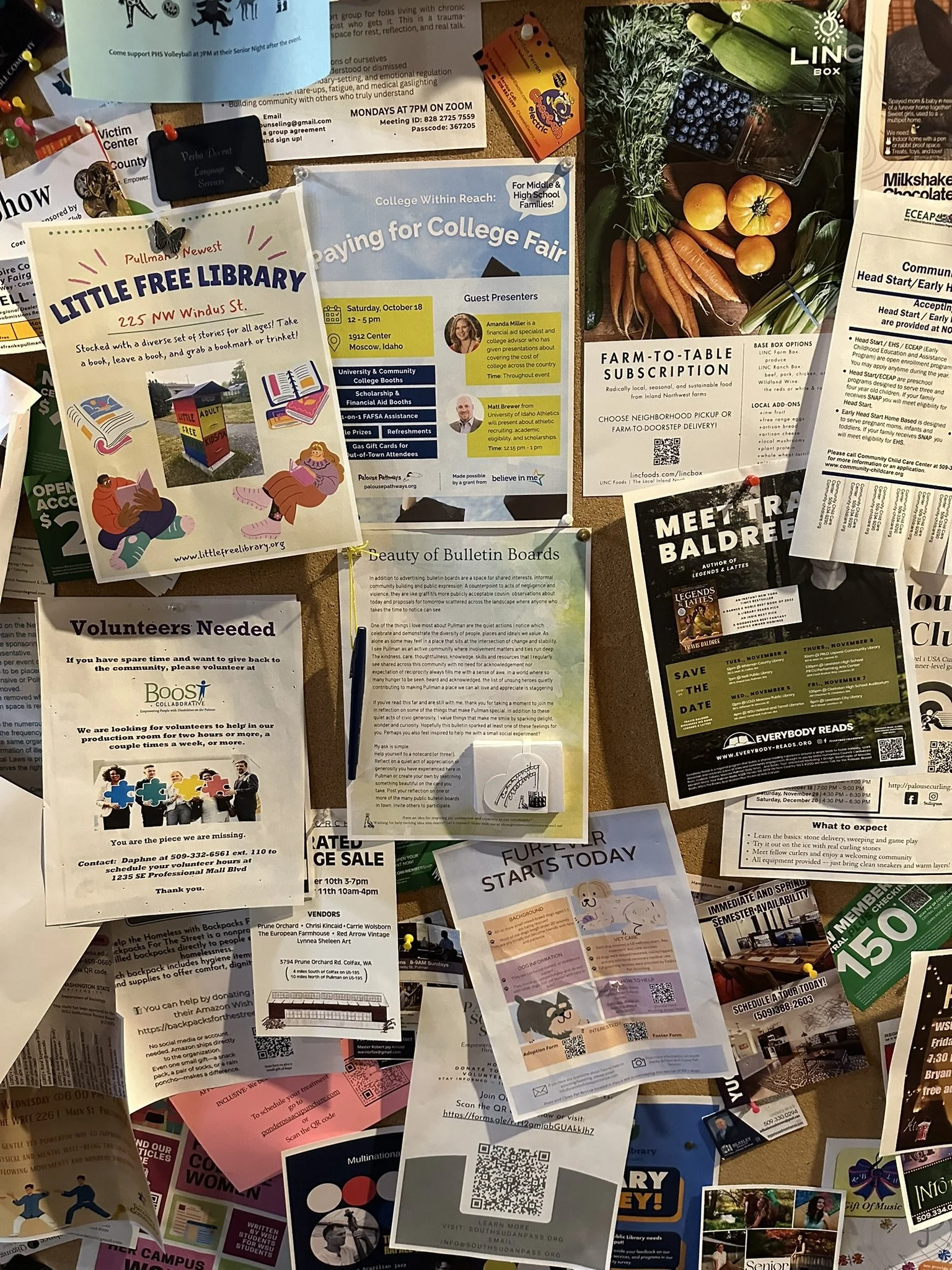 Bulletin board at Neill's Coffee & Gifts in downtown Pullman